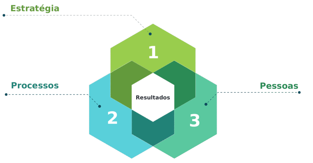 Uma transformação sistêmica, com Estratégia, Processos e Pessoas atuando como uma só engrenagem.